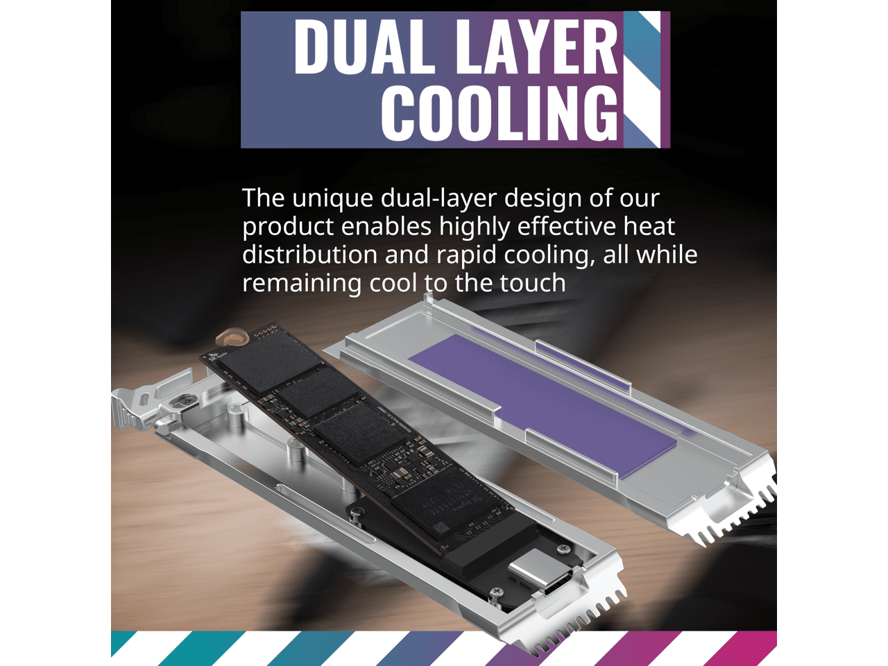 NVME M.2 SSD Aluminum Enclosure, Dual Layer Cooling, Plug and Play, USB 3.2 Gen 2 Type-C, Blistering Speed: